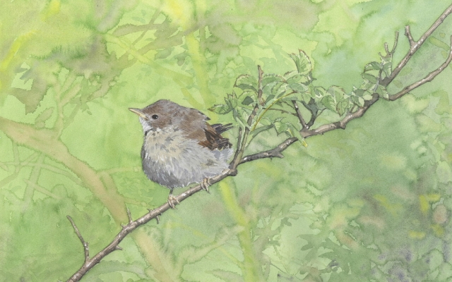 Gråsparvunge. Gröna härliga färger med detaljer. Signerad av konstnär Johan Persson.