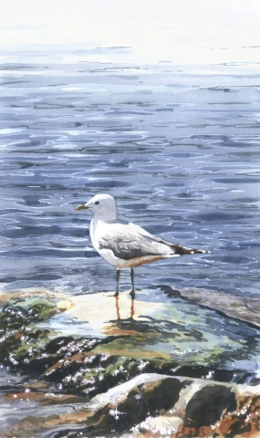 Gråtrut vid vattnet. Blå, naturliga färger. Signerad av konstnär Johan Persson.