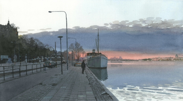 Reproducerad akvarell/giclée - Marskväll vid Söder Mälarstrand