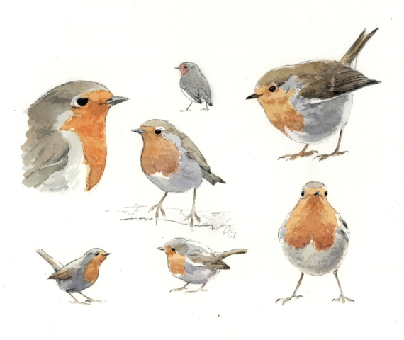 Rödhake i olika former. Härligt naturlig färg. Signerad konstnär Johan Persson.