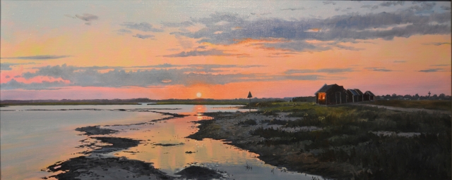 Solen går ner över Kapelludden på östra Ölands kust. Signerad av konstnär Johan Persson.