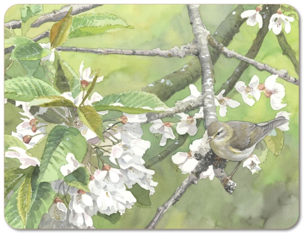 Tallriksunderlägg med motiv av Lövsångare. Värmetåliga till 160 grader